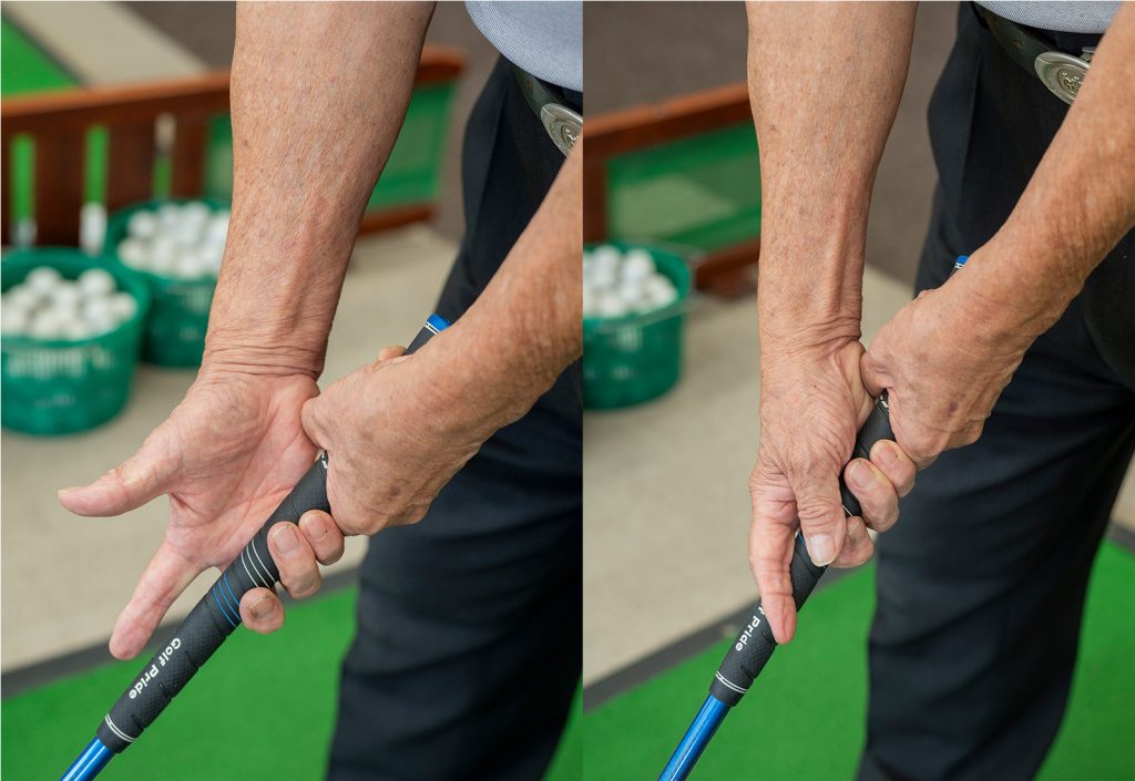 「一番大きな効果は、右手を3本の指と2本の指に分けるので、“握らなくなる”こと。だから体全体がリラックスし、筋肉に頼らず振れるからスムーズなスウィングになり故障しません。皆さんはグリップは“握る”ということしか考えていない。それが力みを生み、スウィングはもちろん、人間をすべて硬くしてしまうんです」