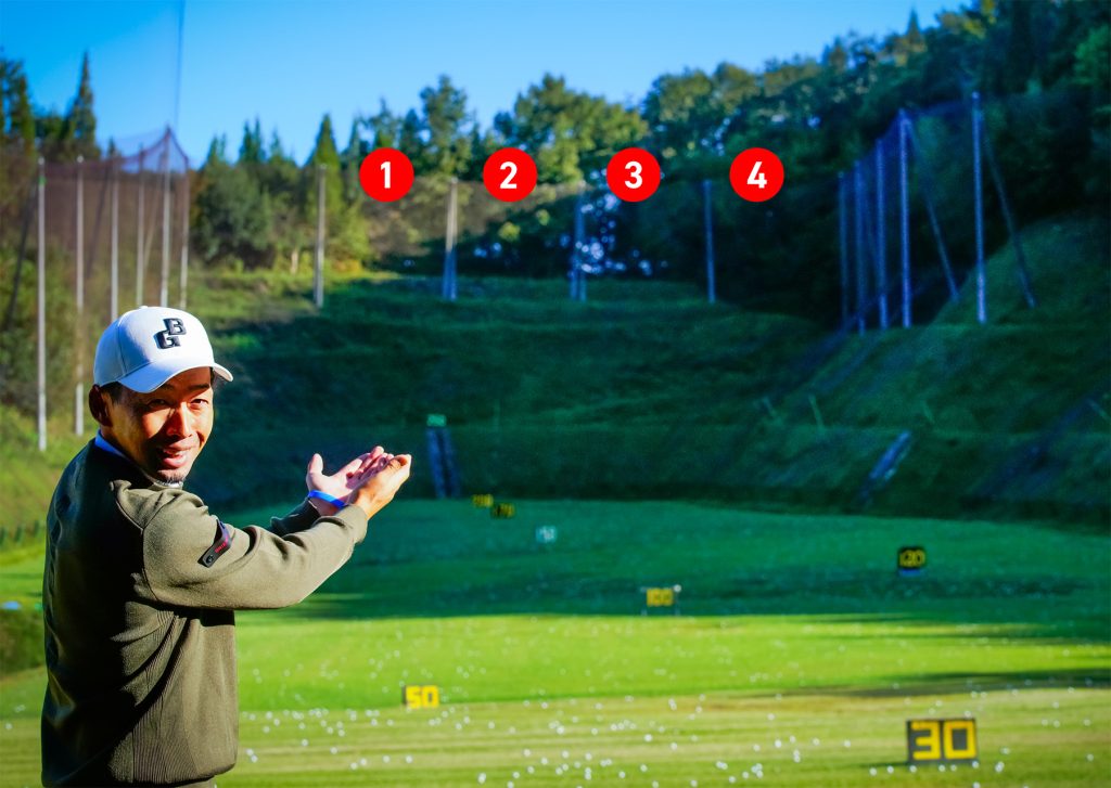 練習場にはアドレスの補助になる「直線」がたくさんあるので、同じところばかり狙うと無意識にそれに頼ってしまう。毎回違う場所を狙うことで、弾道やアドレスの精度が磨かれる