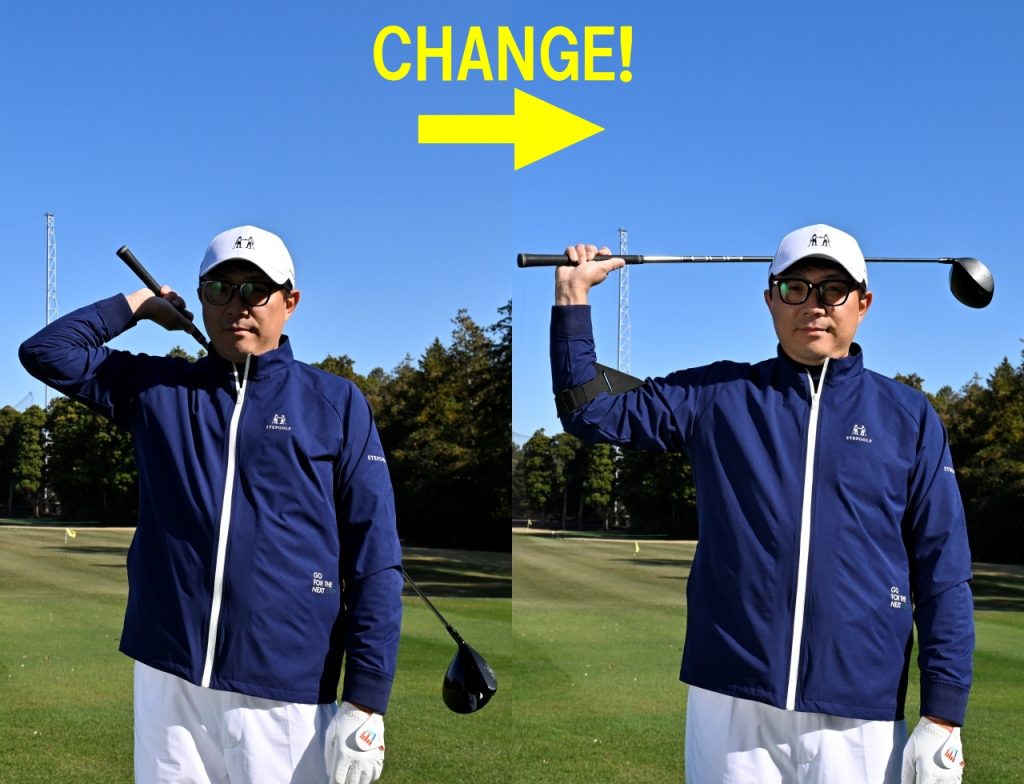 吉田 手先を使ってクラブを上げたり、体の回転を補おうとするだけで、右ひじは簡単に曲がり過ぎてしまうんですよ。