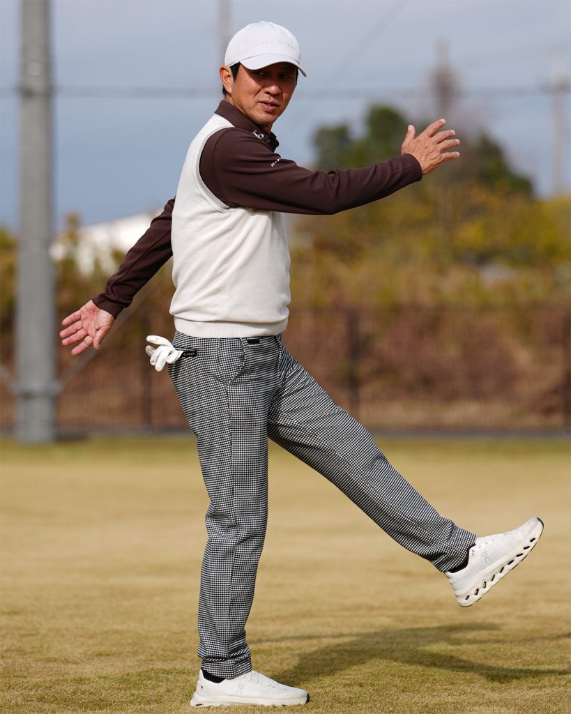 「足は腰の上あたりから生えているから、意識としてはそこから足を出すように歩くのがいい。そうするとスウィングでも体幹が使えるようになり、動きが硬くなりにくい」