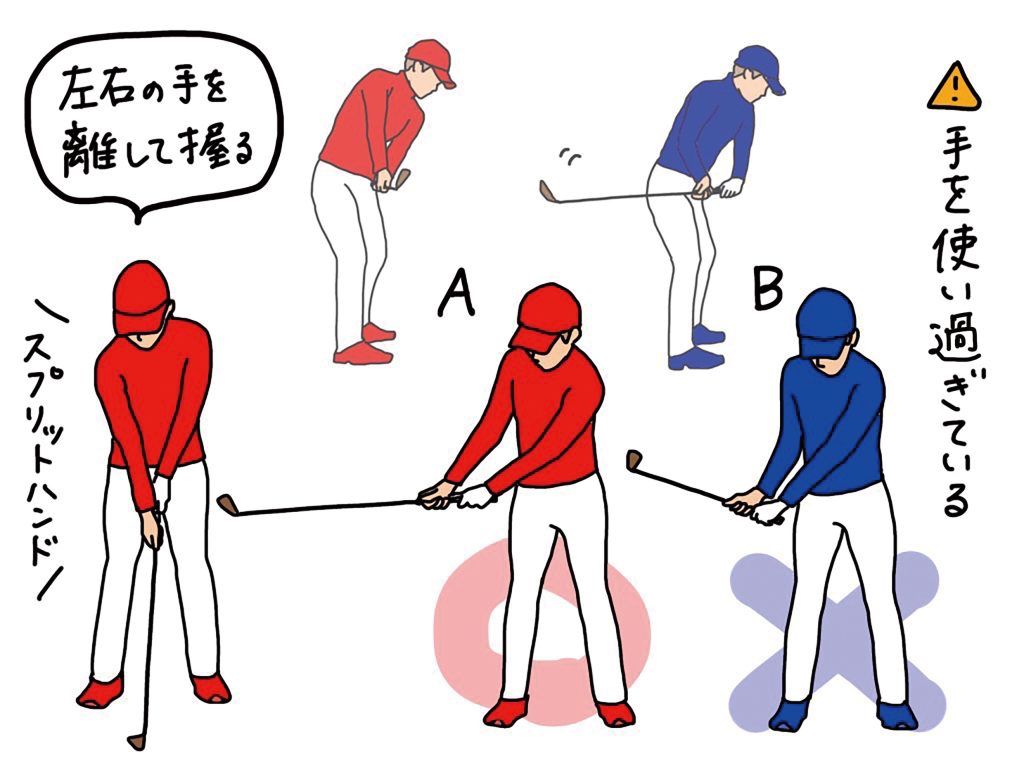 テークバックの正しいポジションを覚えるには、右手と左手を離してクラブを持ってみることがお勧めです。このグリップをスプリットハンドといいます。