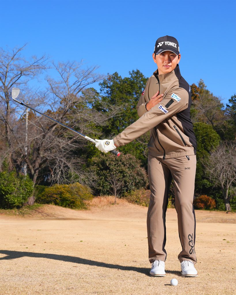 「以前はフェースをシャットに使い上から打つタイプでした。その時はミスが多く苦手意識が強くて……。でも軌道をゆるやかにして、そのための打ち方をしたら格段に精度が上がりました。一番気を付けたことはフェースの使い方。思い切って開閉させることで自然なインサイドアウトの軌道になり、入射角もゆるやかになりました。イメージはボールを包み込むようにすること。柔らかくてスピンの入った球が打てます」