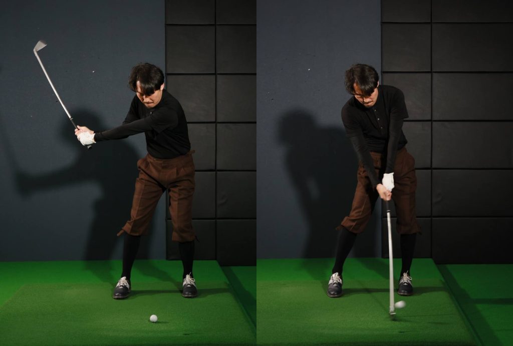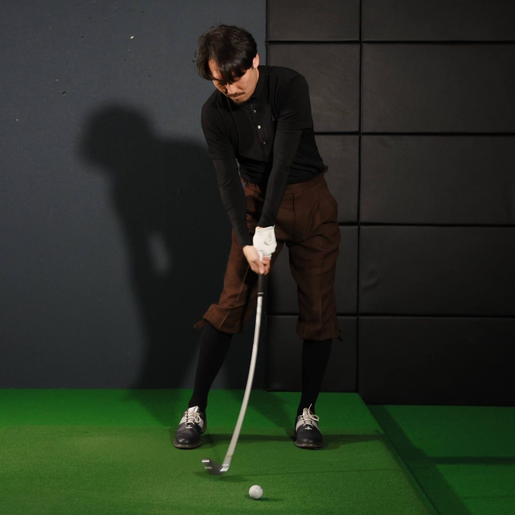 アイアンのトップを、ドライバーで「飛ばそう」とするときのように大きくしてしまうと、プレーン上に引き戻すのに時間がかかり、オンプレーンとなる確率も下がってしまう。