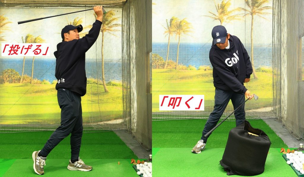 また「叩く」動作もリリースの感覚をつかみやすい。エネルギー効率が悪く飛ばない人はインパクトバッグを叩く練習も非常に効果的だという