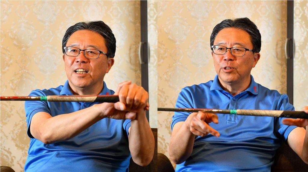 「ジャンボ(尾崎)さんたちから続く時代は『遠心力』がメインのスウィング。グリップエンド支点で、クラブを下方向に積極的にリリースし、グリップエンドをターゲットラインに沿って大きく放り投げていく使い方で、体幹から外へエネルギーを放出して飛ばしていました。