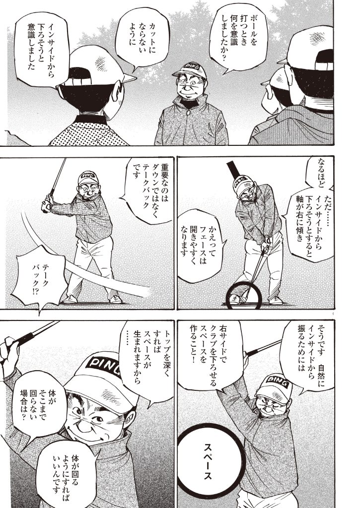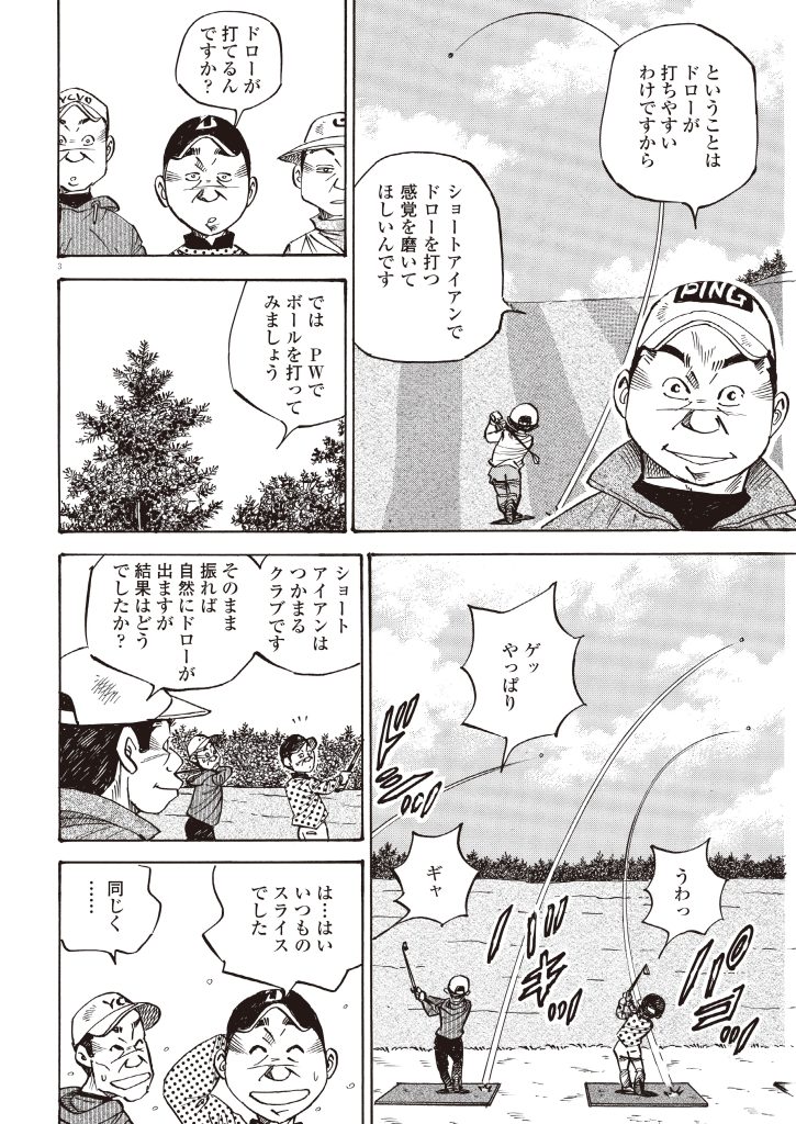 【レッスン漫画】新モダンゴルフ Vol.1111「9IとPWでドローを打て」
