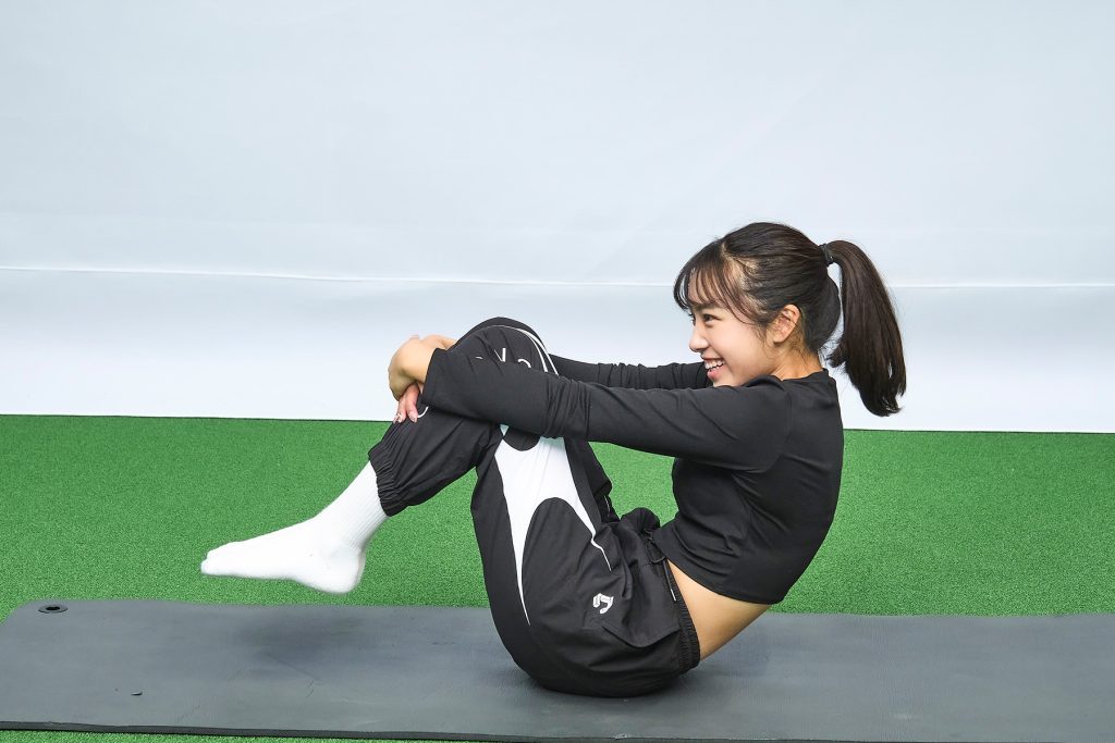 右足体重で構えてしまう方は、右の腰が引けているように構える傾向にあります。左股関節に体重を乗せるためには、左の足首、ひざ、股関節がほぼ一直線になるように構えるのがポイントです。このバランスで構えることができれば、左足を踏んだままフィニッシュを迎えることができます。