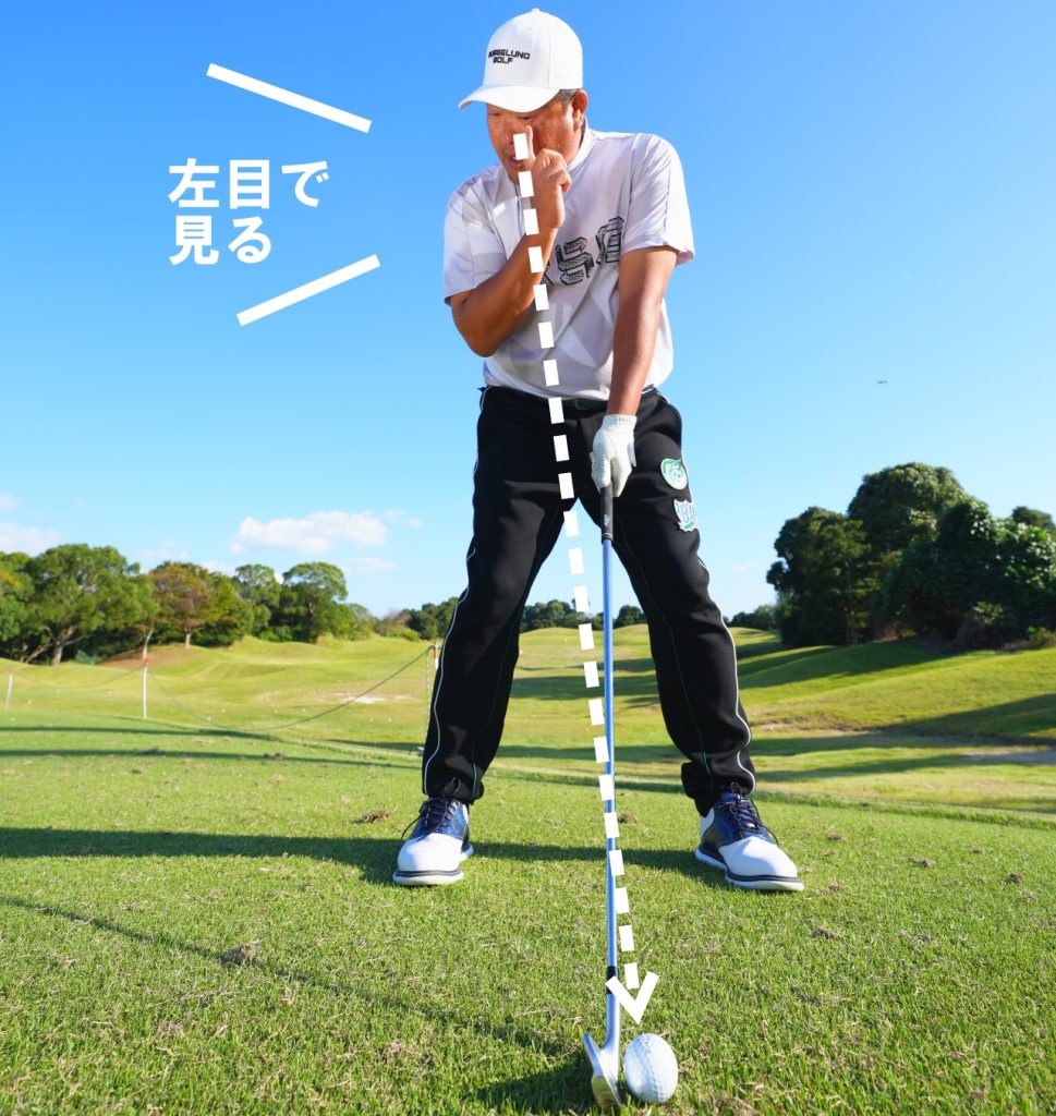 左目が利き目の人は、ボールの左側面を左目で見るようなアドレスになる。手元もあまりハンドファーストにはならない