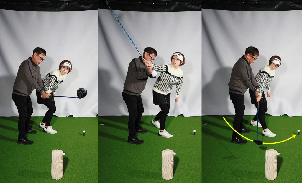 岡本 それでフェースが開くわけですね。ループを反対方向にすれば大丈夫ですか?
