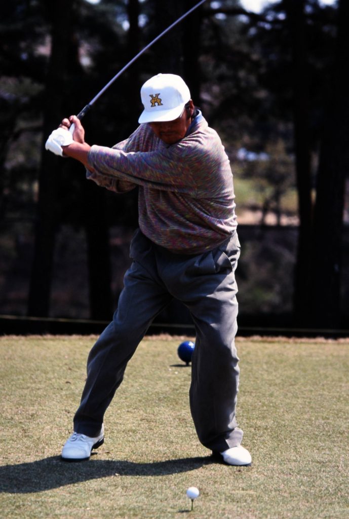 ジャンボさんは「人より高く、遠くへ」を目的にスウィングを作っていた人です。当時は今みたいな弾道計測器やモーションキャプチャはなかったにもかかわらず、自分の研究や経験や感覚をもとに、どんな道具でどんなスウィングをすればいいかを実践していた。