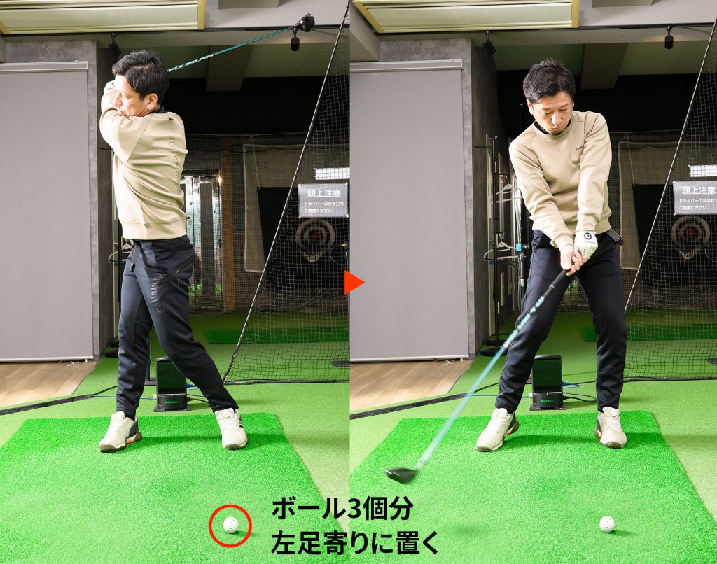 ボールを極端に左に置いて打つ。