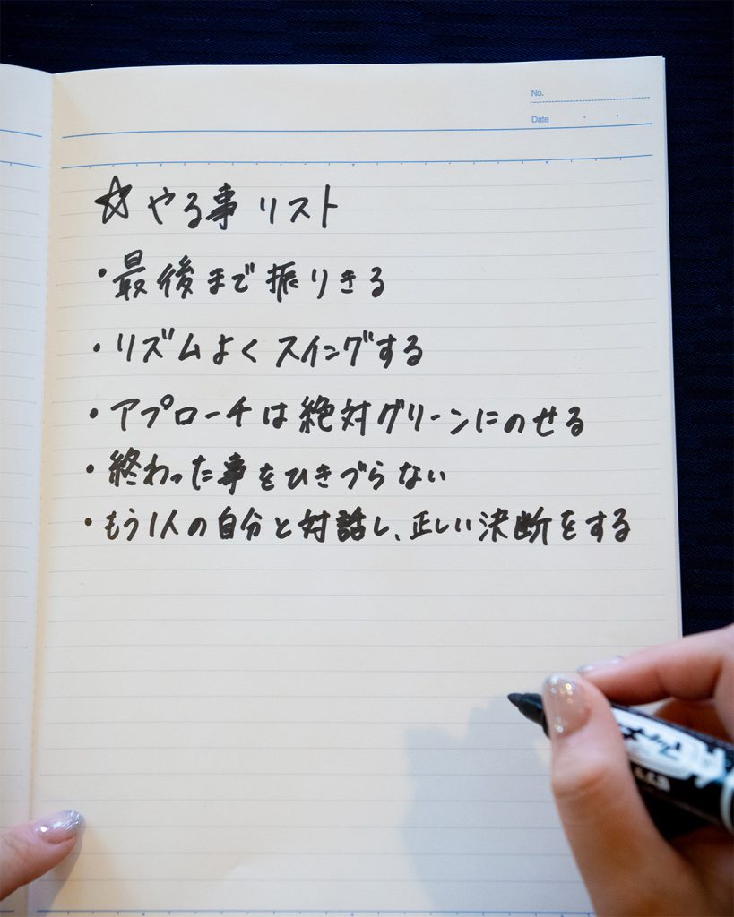 練習でもできないことを、コースでやろうとした時点でマネジメントは崩壊する。現時点で自分ができることは何か、メモに書き出しておくと当日も意識しやすくなり、無謀な攻め方を避けながら迷いなくプレーできる