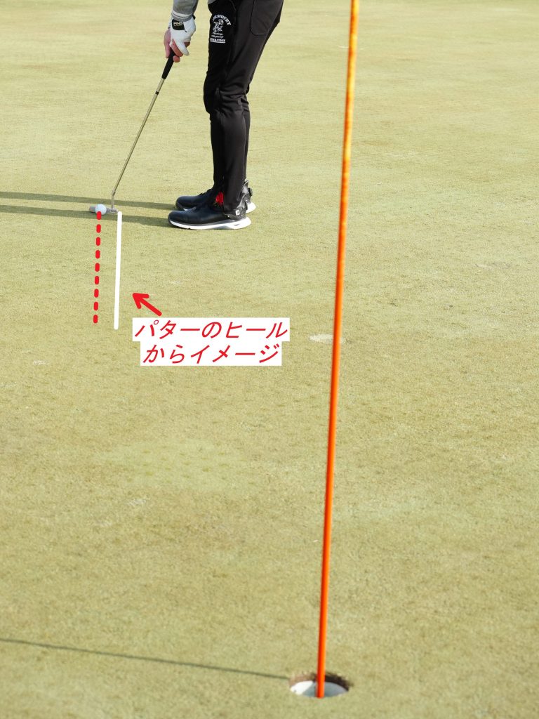 このとき、想像するラインをボールの中心を通る線ではなく、ボールの谷側(フックラインならパターのヒール側)でイメージすると、アマライン側にミスしにくいという。