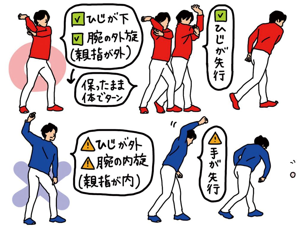 ひじの下向きと腕の外旋が