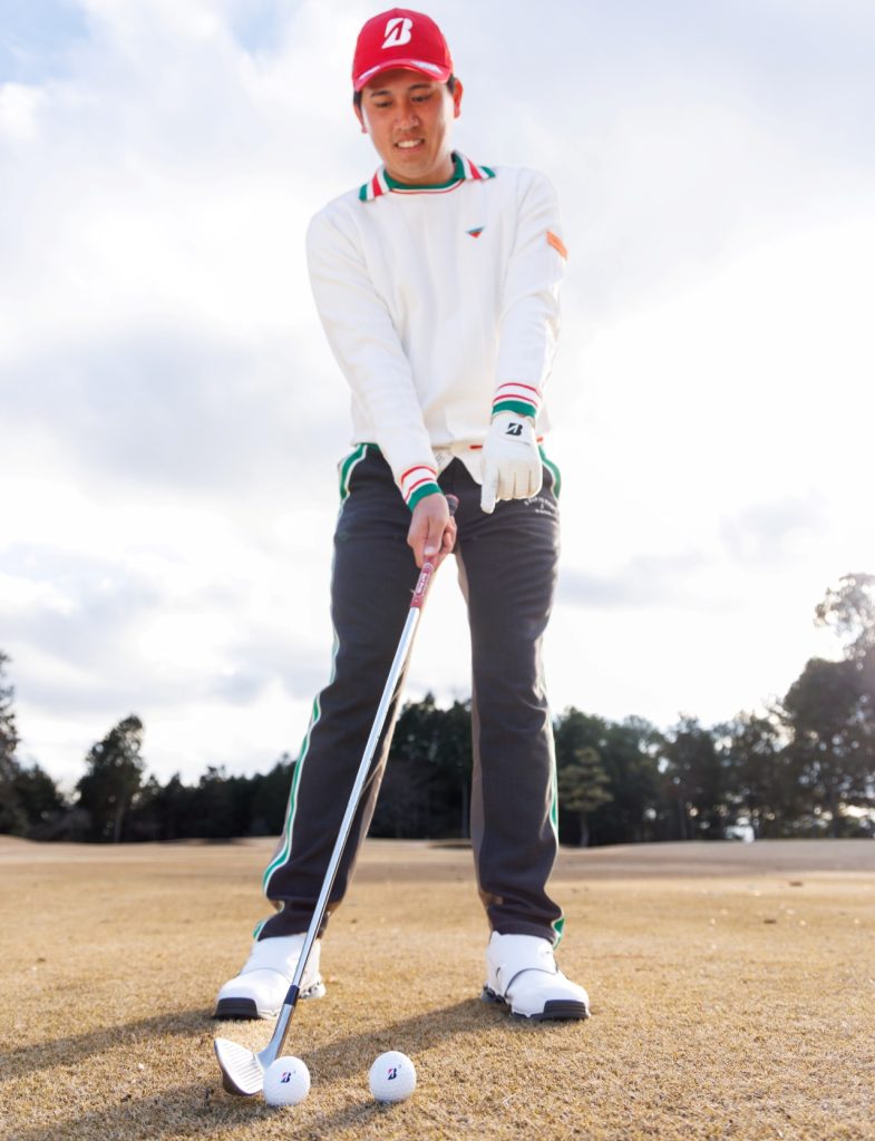 青山 100ヤード以内ですからウェッジを使用すると思いますが、ウェッジは高さが出やすいので、よりボールを抑え込む打ち方が必要になります。
