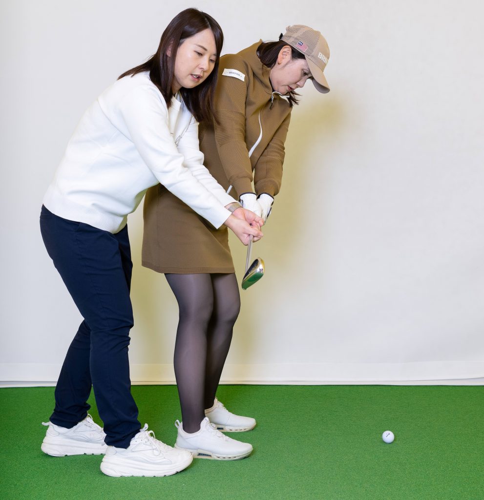 大和田 最初はハーフスウィングくらいの振り幅で、フェースを閉じて上げて、閉じたフェースのままボールを打つ練習をするといいです。右手のひらでボールを押すイメージですね。