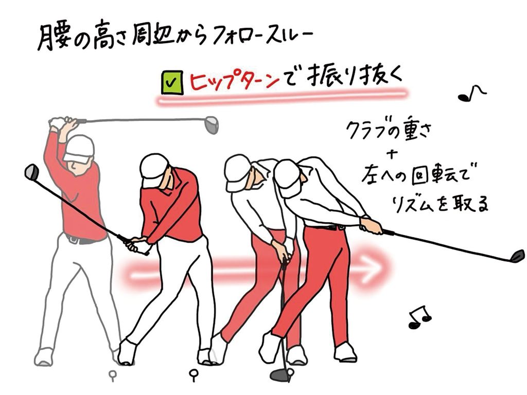 ハーフウェイダウンからフォロースルーまでは、ヒップターンで振り抜くのが正解
