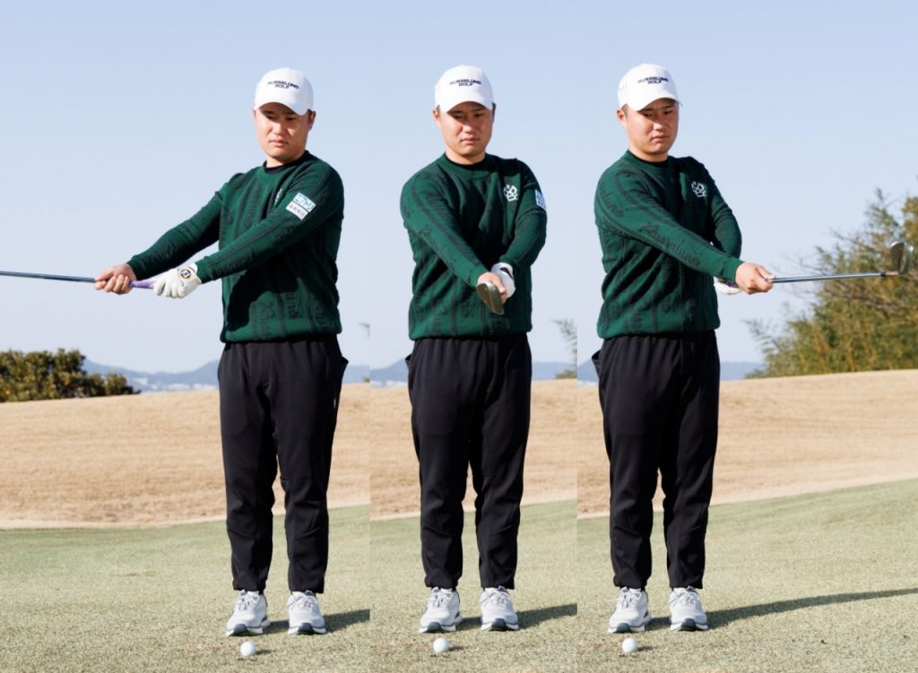 長野 そうです。ピンが奥のときはキャリーをある程度出さなければならないので、振り幅を大きくして「等速」で振ることを心がけます。このとき、手首の動きを抑えて腕をしっかり振るイメージを持つといいでしょう。ちなみに、ヘッドを急激に加速させる打ち方もありますが、アマチュアの方には難しいのでおススメしません。