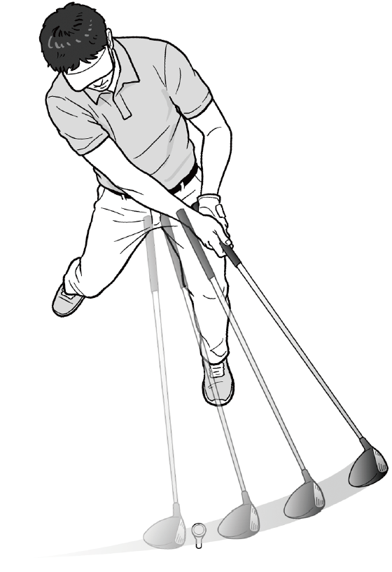 ボール位置を見たまま素振りをして、ヘッドの残像に目を凝らそう。案外ヘッド軌道が視認でき、自分の傾向を判断する手助けになる