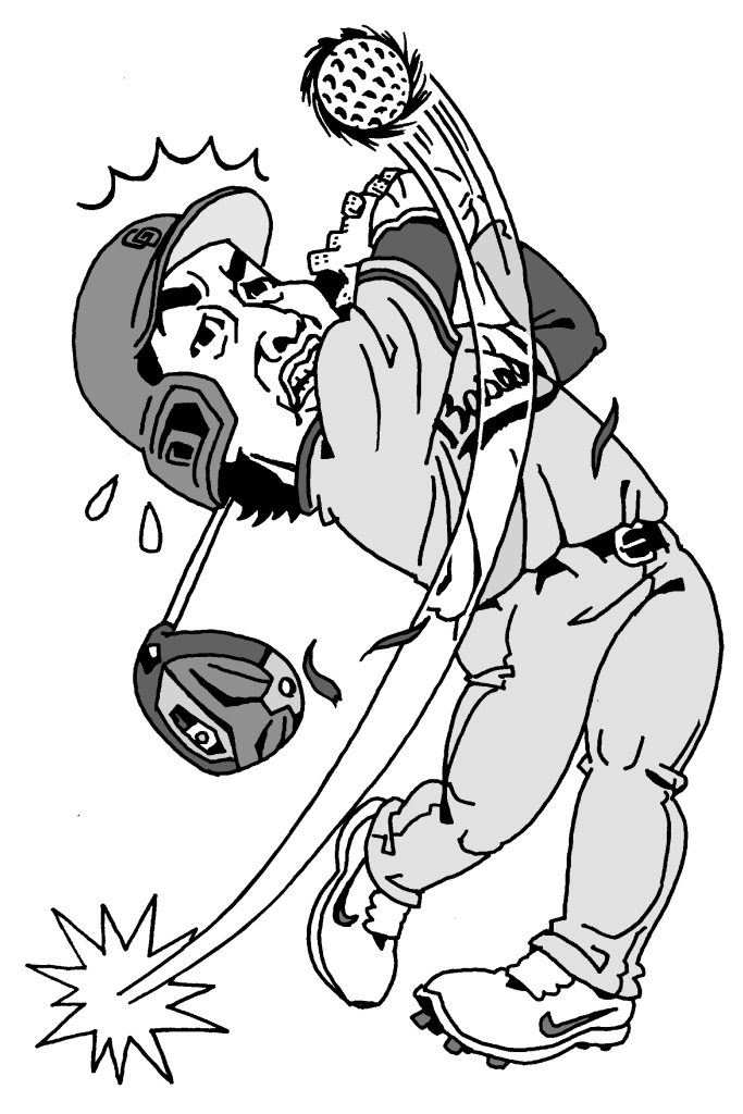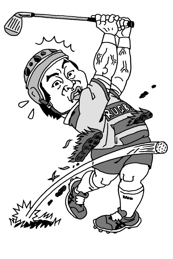 ゴルフ歴25年。ラグビー一筋、ポジションはもちろんフォワード!「ラグビーのせいか胸の筋肉が邪魔をして上手くスウィングができない。力加減も下手くそです。お腹のお肉が邪魔になり、ティーアップも上手くできません」