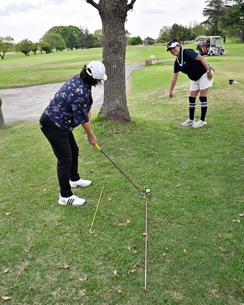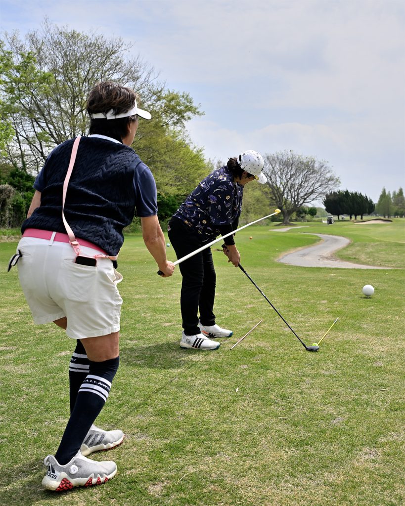 「一緒ですね、何が必要なんでしょうか」と言う権田さんに、「クラブの取り扱いが上手いことです。頭でイメージしたことをすぐに筋肉に伝えられることが運動神経。権田さんのすぐに反応できる能力は素晴らしい。ただ、上達するためには、押さえるべきポイントを知識として持っておく。ただ“動ける”だけではパフォーマンスが上がらないんです」と桐林プロ。