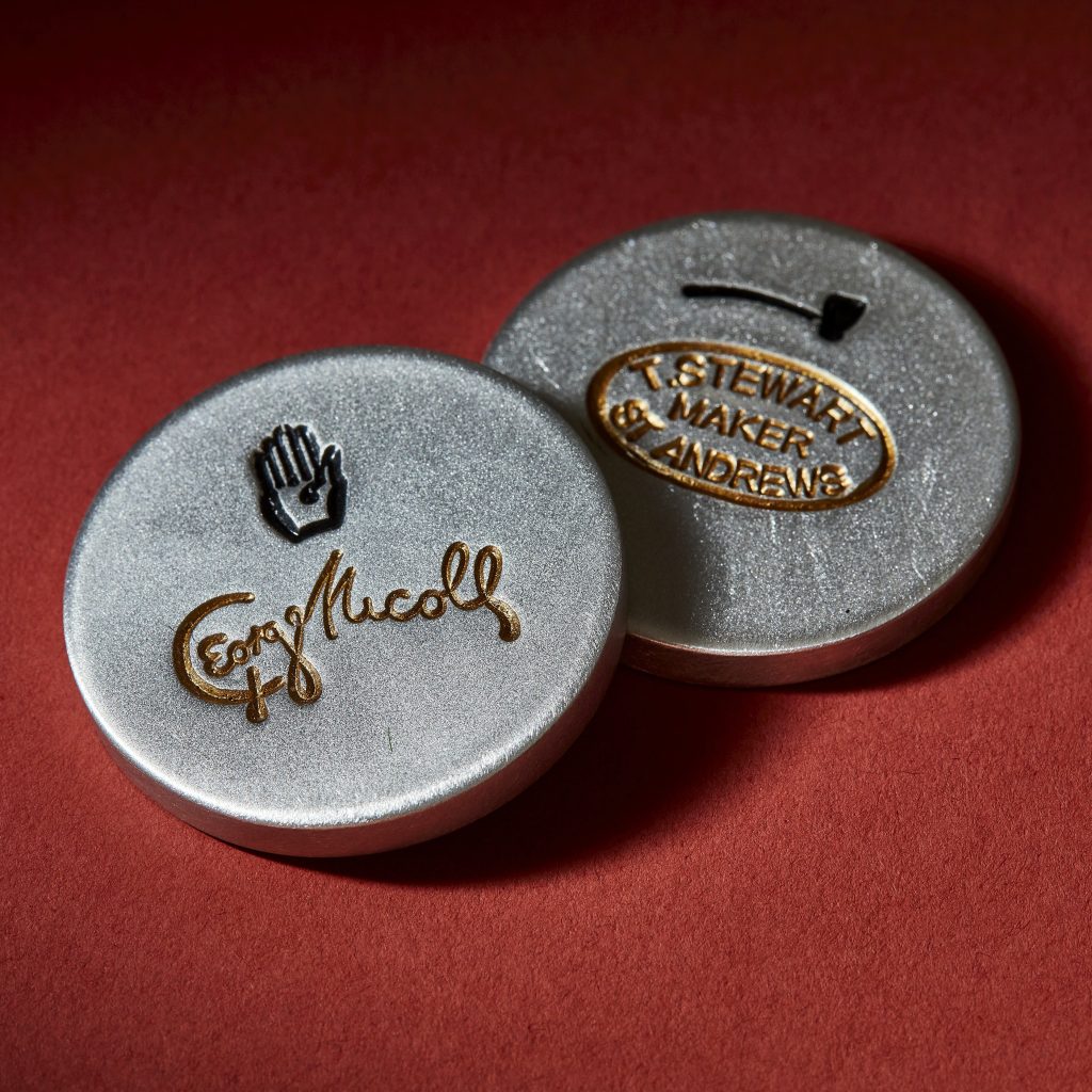 その昔、鍛冶屋だったジョージ・ニコルとトム・スチュワートがゴルフクラブを作り、ヘッドにつけた印をマーカーに復刻。