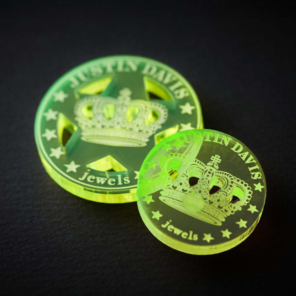 ●素材/アクリル ●カラー/ネオングリーン、クリアー、ピンク ●サイズ/大 直径約40㎜×厚さ約5㎜、小 直径約30㎜×厚さ約5㎜、化粧箱入り