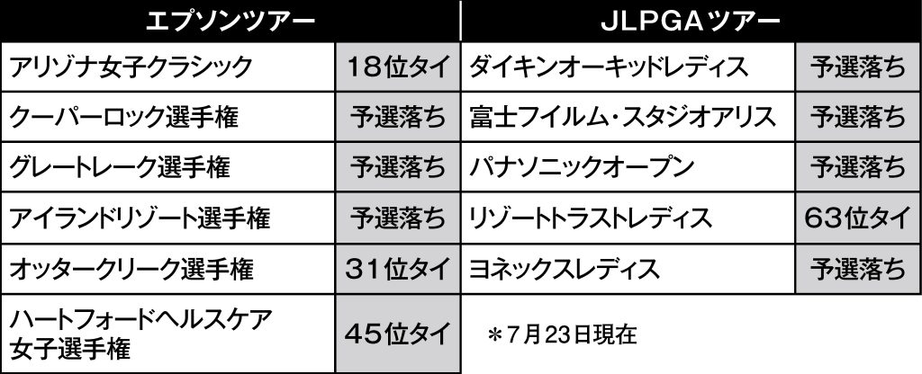 山口 もともとはエプソンツアーを主軸にするつもりでした。2月にフロリダでエプソンに全部出て、一度日本に帰る予定だったんです。でも急に(日本の開幕戦)ダイキンオーキッドに出られることになり、それだと2月にフロリダに来ても1試合しか出られないので、お金がもったいないと思ったんです。それでちょっとバタバタしましたね。その後5月くらいに森守洋コーチに日本でやればシードも狙えるから、まずは日本でスウィングを固めて、アメリカに行くのは来年でも再来年でもいいのでは? と日本でプレーすることを勧められ、夏に日本に帰るという選択をしました。