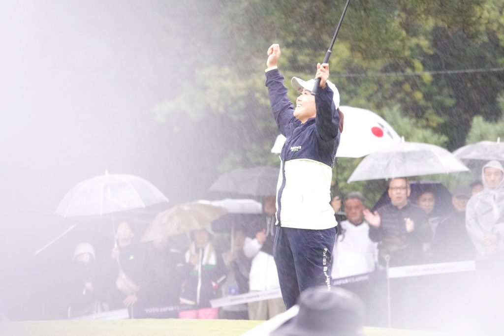 日本で唯一開催される米女子ツアー公式戦「TOTOジャパンクラシック」。最終日が大雨の影響で中止となったため、3日目終了時点でトップタイに並んでいた畑岡奈紗と荒木優奈によるプレーオフとなり、1ホール目をパーとした畑岡が優勝。2022年4月以来、実に3年ぶりとなる優勝を果たした。