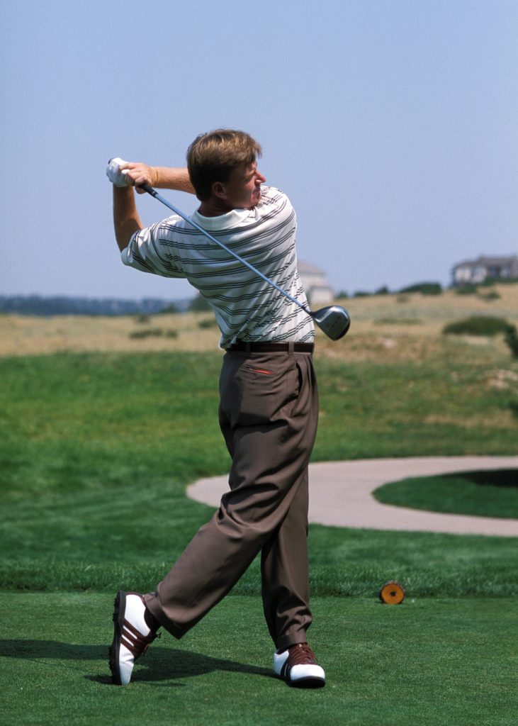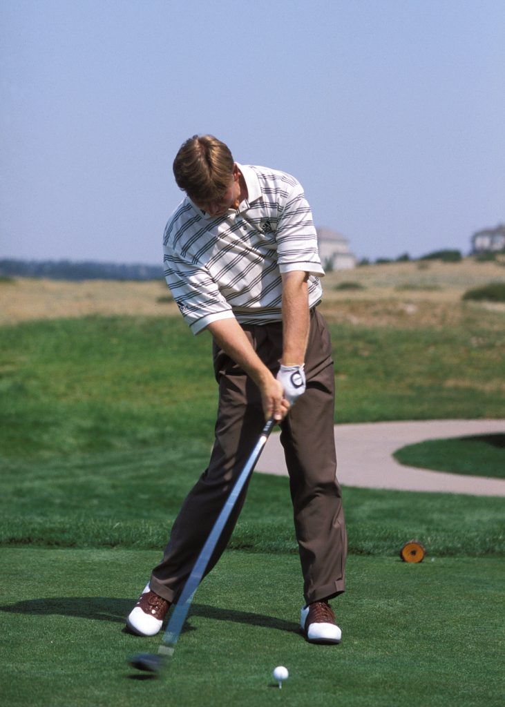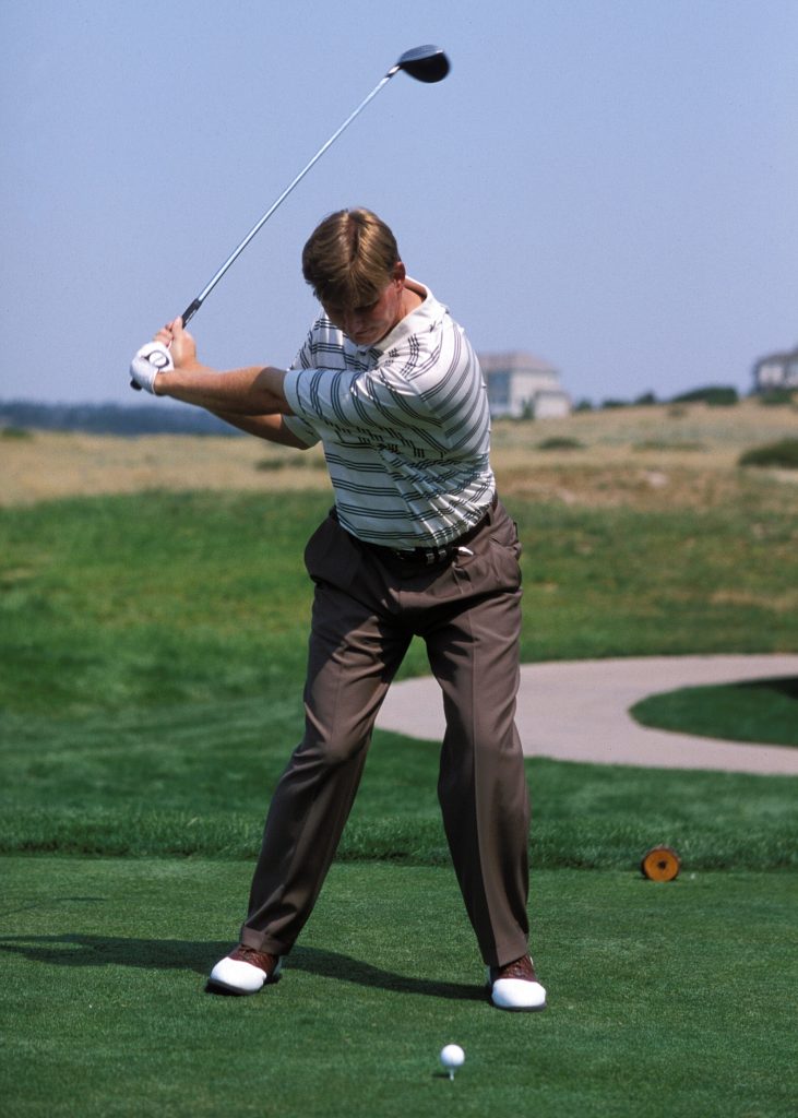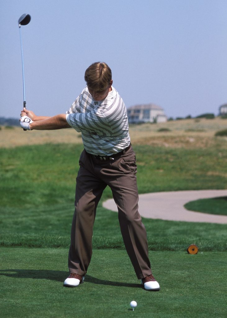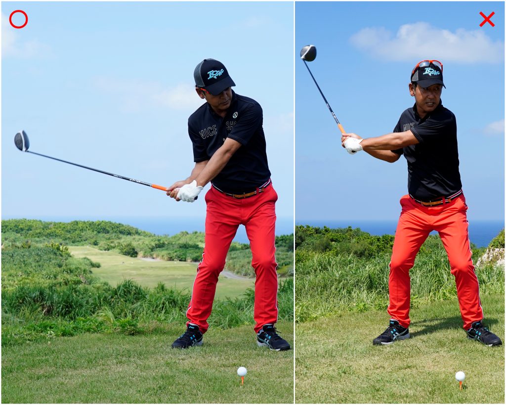 ゆったりとしたリズムで振りたいなら、バックスウィングとダウンスウィングのスピードを合わせるようにすること。アマチュアは下半身が使えない手打ちなので、切り返しから急加速してしまう人が多い