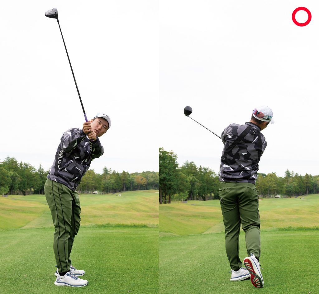 「僕はもともとトップが高いんですけど、そこからループしてヘッドがインサイドから入っていたんです。だからトップからボールに直線的に下ろしてカットに振るようにしました」