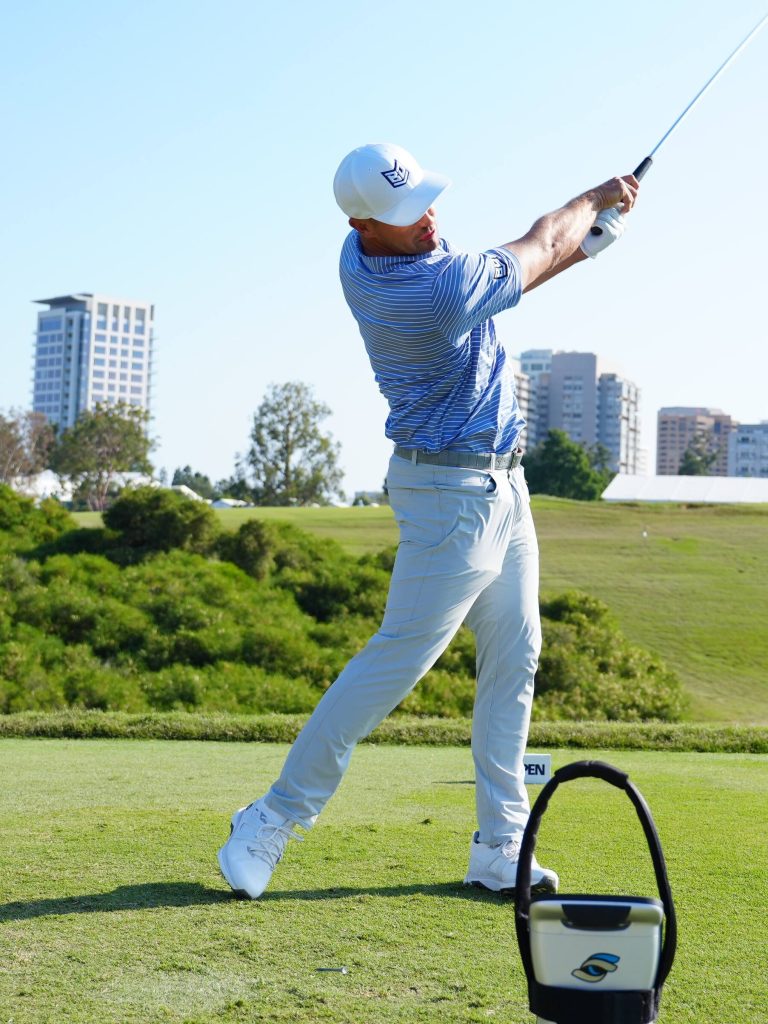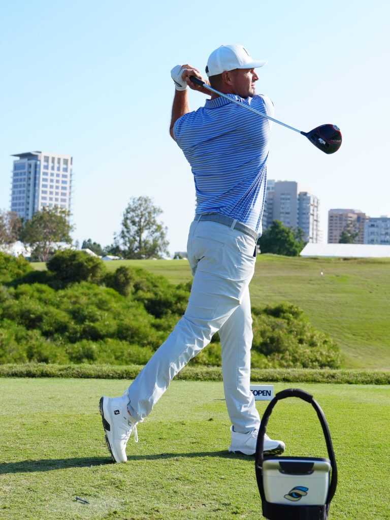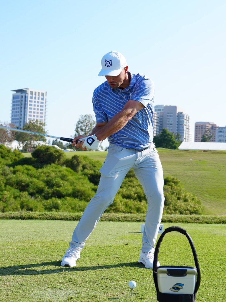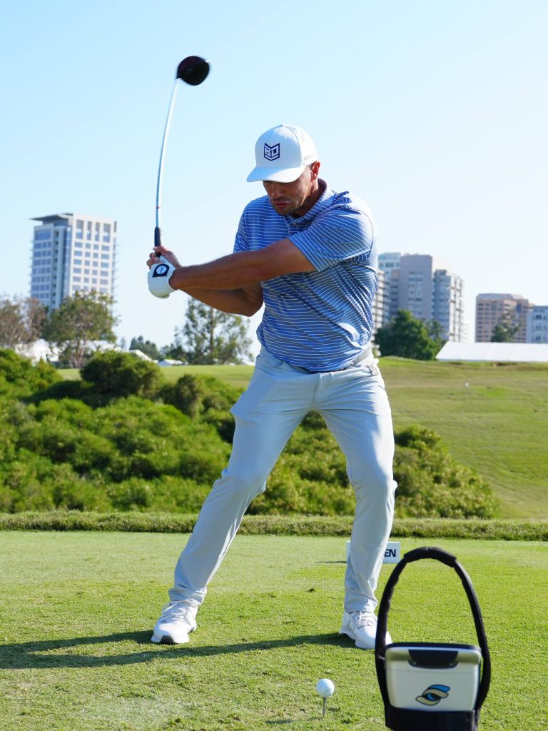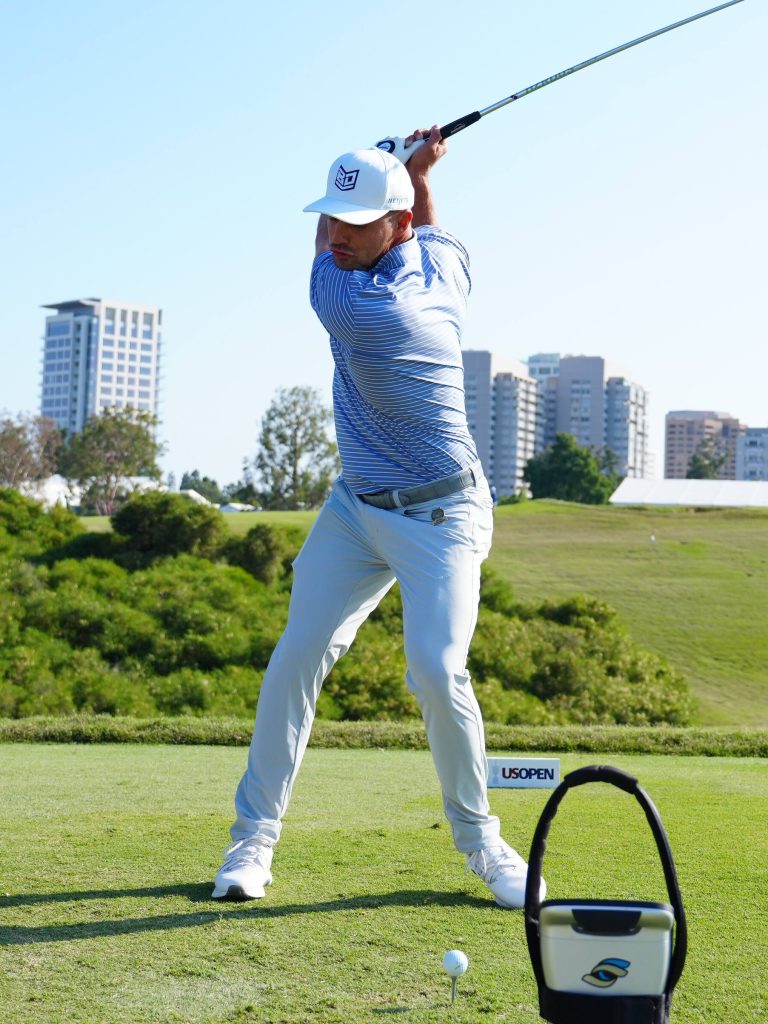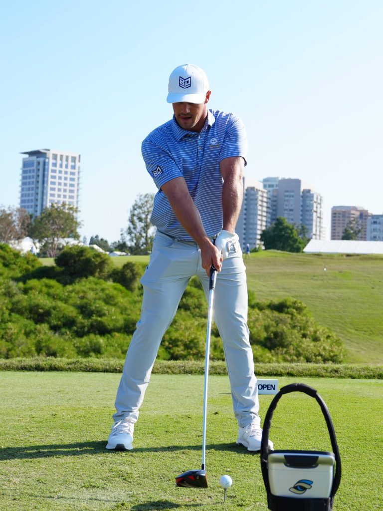 デシャンボーも鍛え上げた筋肉隆々の体でパワーを生かす打ち方。倉本と同様にクラブの動きは最小限にして、飛ばし屋に伴う曲がるリスクを減らしている