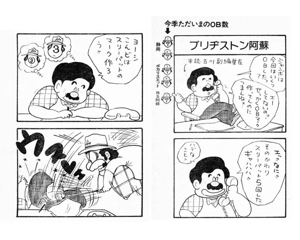 作者の鈴木ひろし氏(1941~1991)に連載を依頼したのは氏が42歳の時。シャイで、トーナメント取材する時も隠れて木の陰から。尾崎に声をかけられると面はゆかったからだ。笑いの中にもアイロニーの矢は刺さっていた