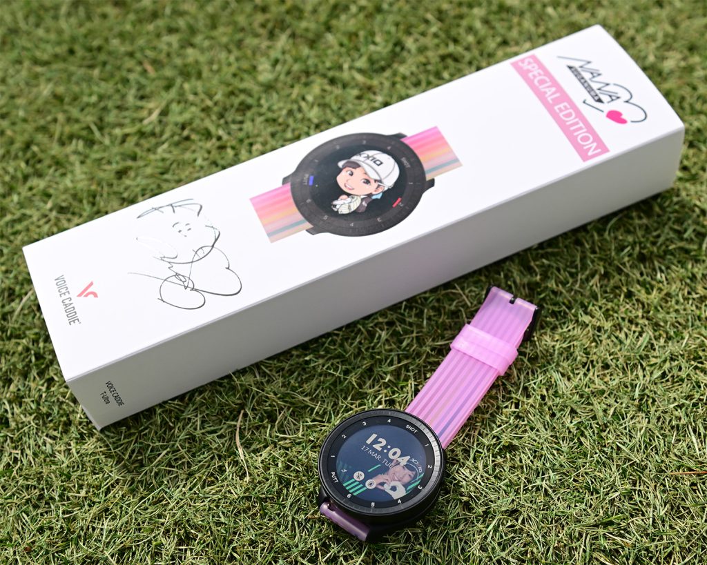 かわいらしさはもちろんのこと、ボイスキャディの「T-Ultra」とのコラボなので距離計としての機能も申し分なし。菅沼菜々ファンにはたまらないゴルフウォッチ。ぜひ手に入れて会場に行こう。