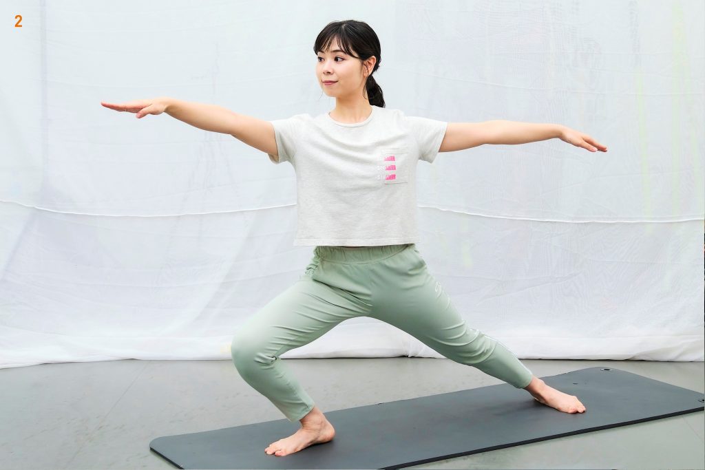 今回はヨガの「戦士のポーズ2」を紹介します。「戦士のポーズ」には1、2、3があり、2は股関節の柔軟性アップに最も効果的です。「戦士のポーズ」は「英雄のポーズ」と呼ぶこともあります。