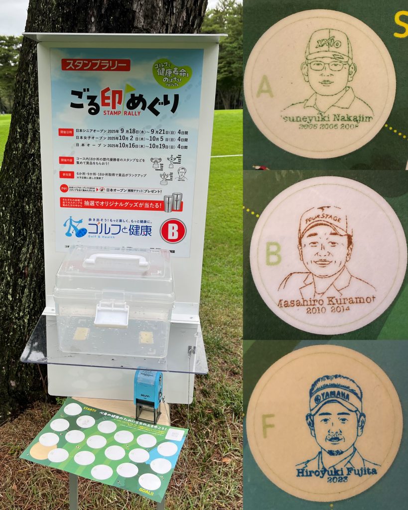 一昨年から始めて大好評のイベント。大会のギャラリーであれば誰でも参加可能。コース内18カ所に設置された歴代優勝者などのスタンプを集める。6カ所、9カ所、18カ所取得で商品がランクアップする。「妻が神社仏閣巡りが好きで御朱印を集めており、私もやってみたら楽しくて。ゴルフでも同じようなことができたら面白いと思って考えました。ゴルフ観戦は1万歩以上、平均8~9km歩くと言われています。ゴルフ場はアスファルトを歩くより足にも優しい。ゴルフ観戦が健康にいいという研究もあります。プロの素晴らしいプレーを見ながら綺麗なコースで森林浴をして歩くことはトーナメント観戦でしかできません」(中島)