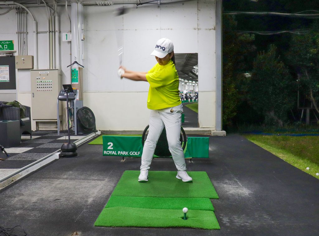 「ティーが前に飛ぶアマチュアが非常に多いんだけど、それは、振り遅れのアッパー軌道になってる証拠。飛距離がロスするだけでなく、毎回ティーを探しているとその分時間もロスしちゃうからね(笑)。それは余談として、心菜ちゃんのスウィングはとにかく動きに無理がないのがスバらしいと思う。意見を聞き入れる能力も高いし、スウィングも無理がないから、きっと息の長い選手になってくれると期待してるよ!」