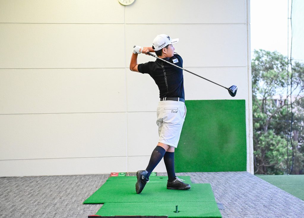 「めちゃくちゃ器用な選手という印象。彼の原動力は回転力。トップから軸を保ちつつ右のお尻をグイ〜ッと押し込むのが特徴。飛球線後方から見ると、インパクトでお尻のほっぺがキレイに2つ見えるくらい押し込んで回転しているのに軸ブレしてないから、本人が目指す通りボールに効率よく力を伝えられている。実際、中2とは思えないほど飛ぶしね。フェース面がスウィング中にどうなっているか把握しているので、インテンショナルにボールを曲げることも楽勝だよね。昔、僕がゴルフを始めた頃、『ゴルフは思った場所にボールを止めるスポーツだ』って教わったけど、彼ならそれを体現できるよね、きっと」