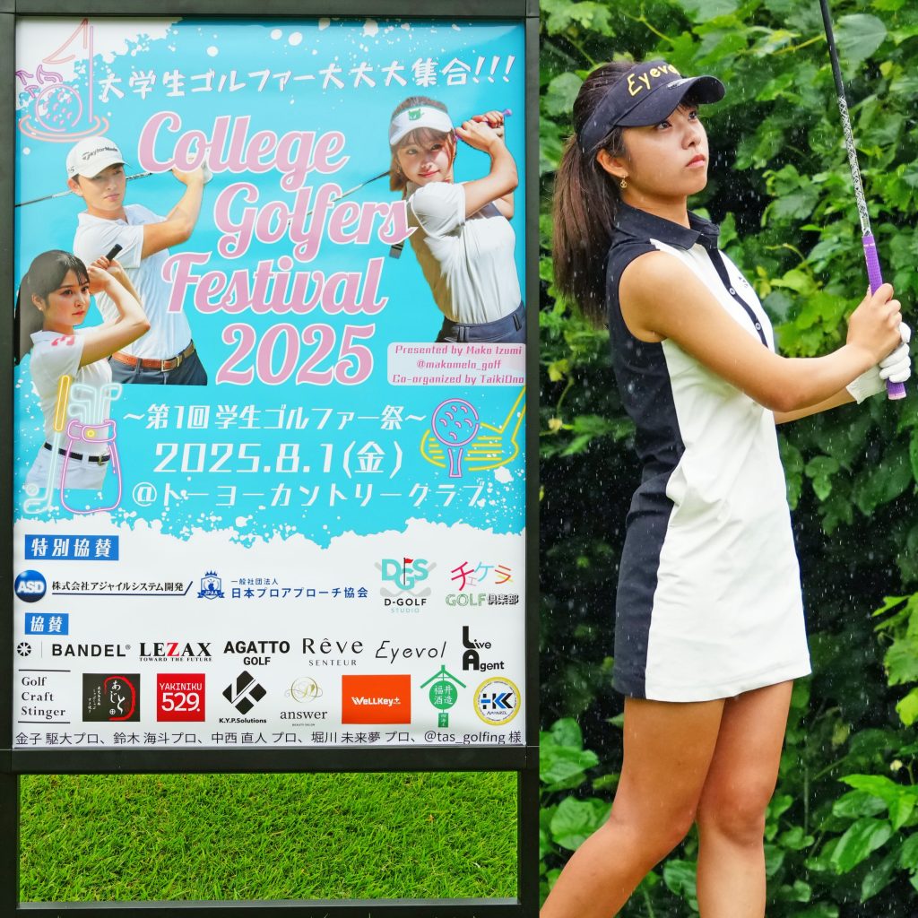 コンペを主催したのは、小誌の今年のビューティクイーンでもある泉茉子。彼女自身慶応大学の4年生で、ゴルフのインフルエンサーとしても活動している