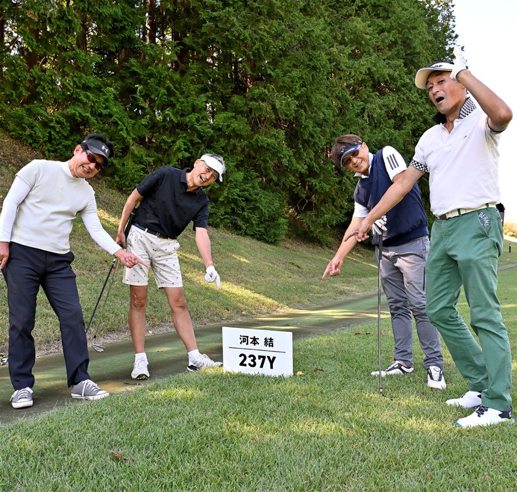 スコアではとてもかなわないけれど、もしかしたら飛距離なら女子プロに勝てるのでは? そう考えているアマチュアは少なくないだろう。そこで、今回の計測ホールでは、河本結(237Y)、山下美夢有(247Y)、竹田麗央(269Y)という、注目の女子プロ3人の平均飛距離を表示した看板を設置。「アマチュア vs 女子プロ」の“勝手にドラコン勝負”も併催した。