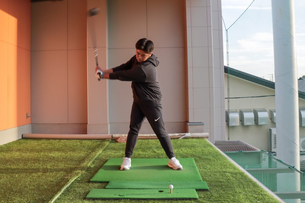 通常、左手1本のドリルはウェッジなどを使用することが多いが、滉太くんは5番アイアンで25球連続で打つことを日課としている。