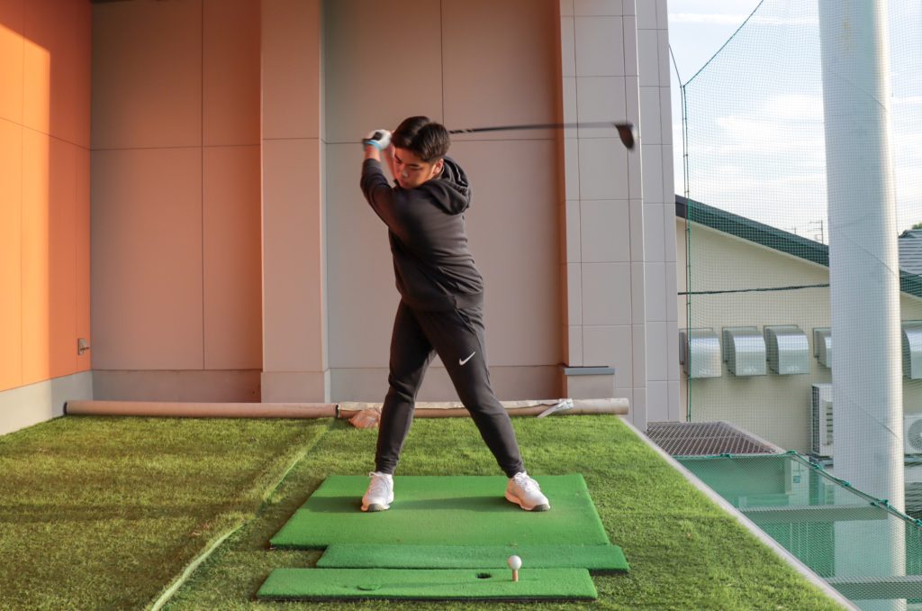 「上体が浮くのを防ぐのに、ヘッドアップしない意識は基本だけど本当に重要だよね。滉太くんが意識しているのは、①左手で打つ②軸を保つ③球をよく見る、の3つだね。本当に基本のキだよね。スウィングの完成度を見ると、いかにそれが重要かわかる。流行りのスウィングを目指し、いろいろ試すのもいいけど、やっぱり基本に忠実なスウィングは強い。ゴルフは円運動だから普通に打ったらドローになる。だからドロー打ちっていうのは、体に無理がないしイメージもしやすい球筋だと思う。滉太くんは考え方もしっかりしているし、それを言語化するのも上手。何から何まで言うことなし!」