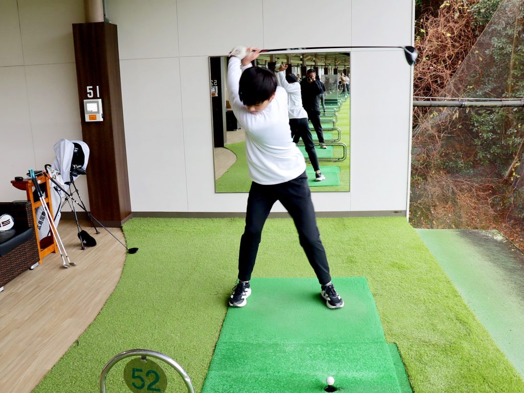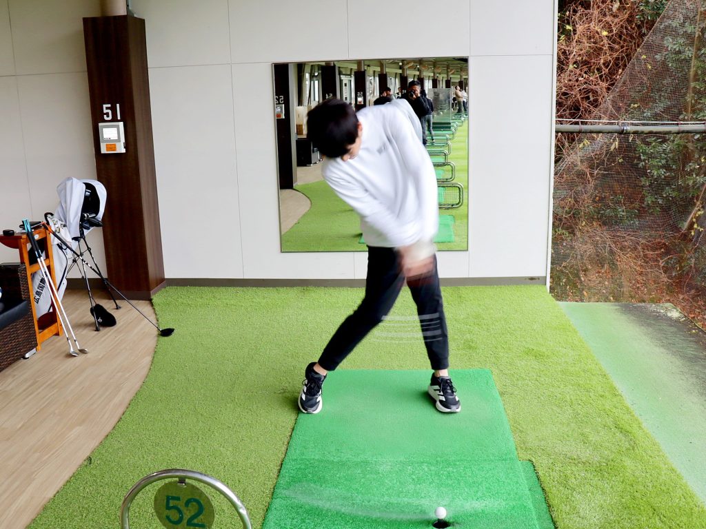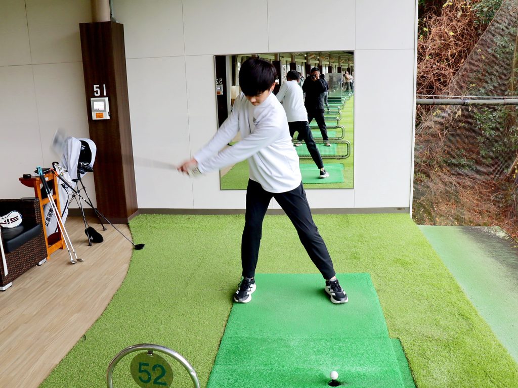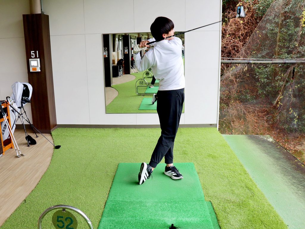 「ボクの理想は、中弾道のストレートフェードボールです。なので、前傾角度をキープすること、手先を使わず下半身リードで回転速度を上げつつハンドファーストでインパクトすることをイメージして振っています」
