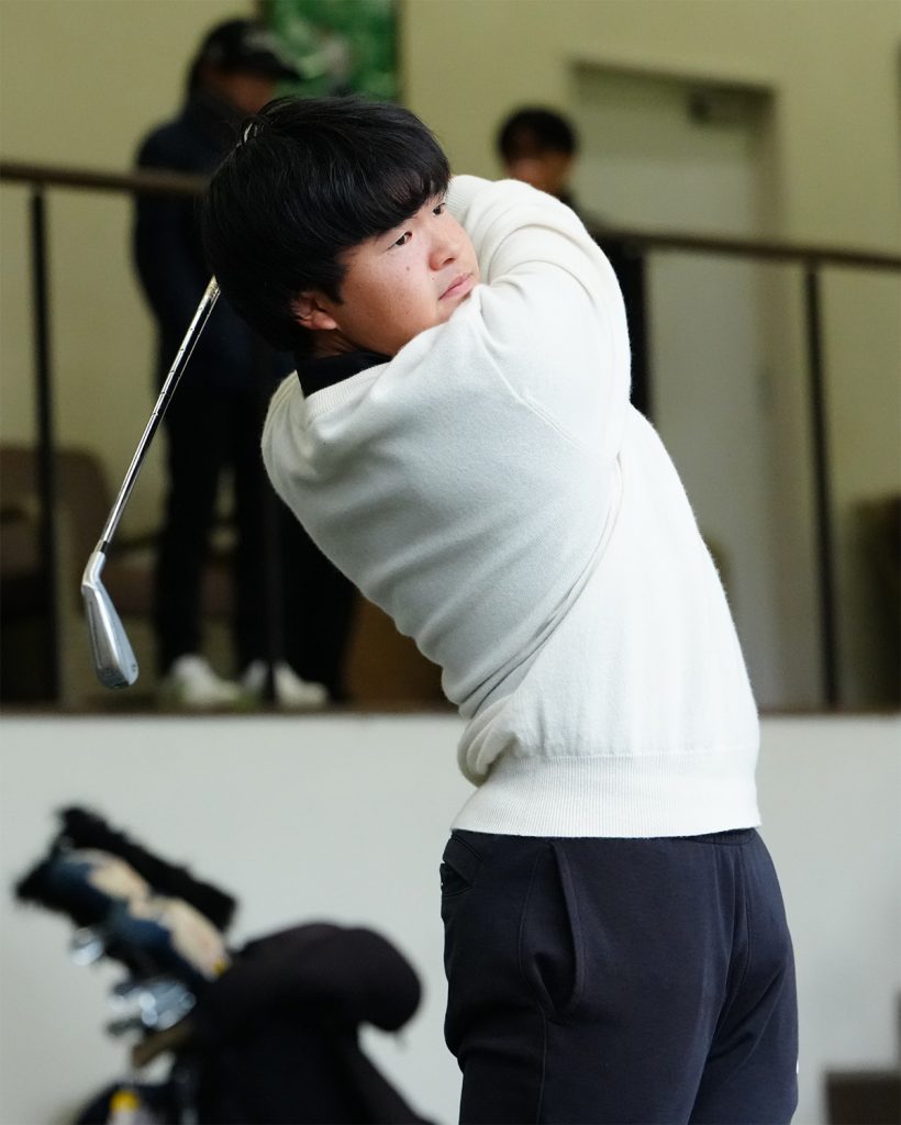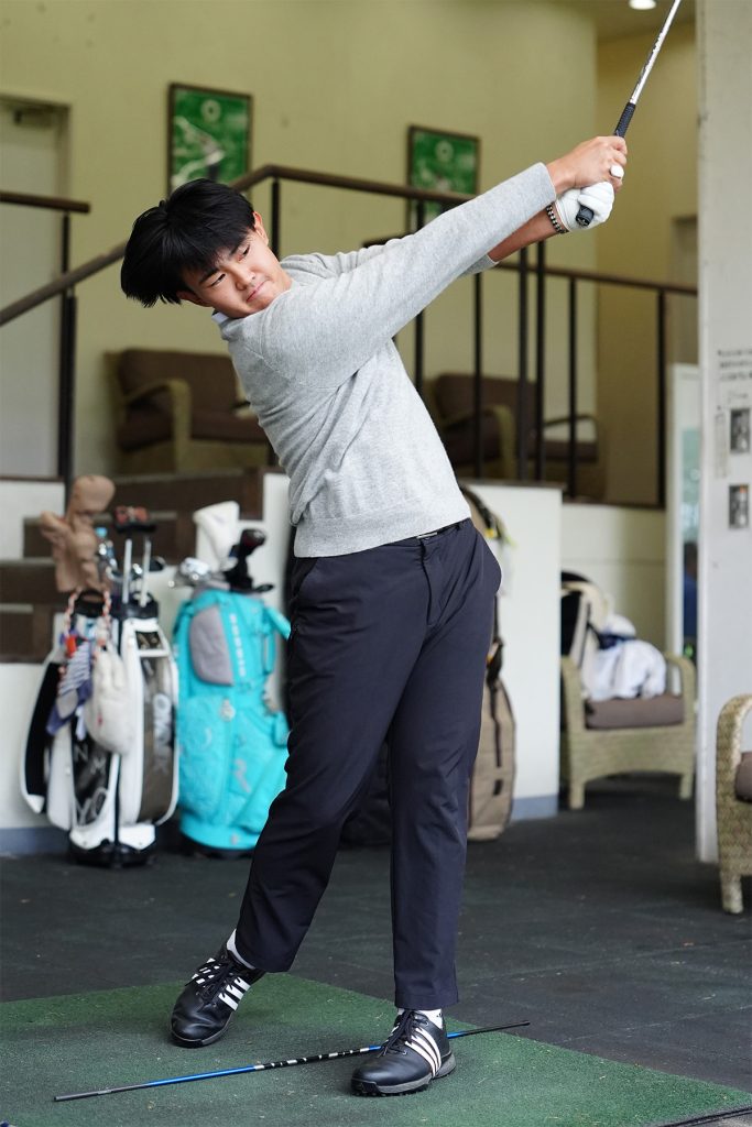 煌心 参考にしているのは松山英樹プロの技術や発想。同じウィークグリップでもありますし、フォースタンスも同じA1で、似ていると言われる部分があるので。好きなスウィングはやっぱりタイガーみたいな綺麗なスウィングです。平田憲聖プロもよく見ます。ダウンスウィングからインパクトの体の使い方がすごくしなやかで、低い場所から上手く力を持ってこられているなと思います。